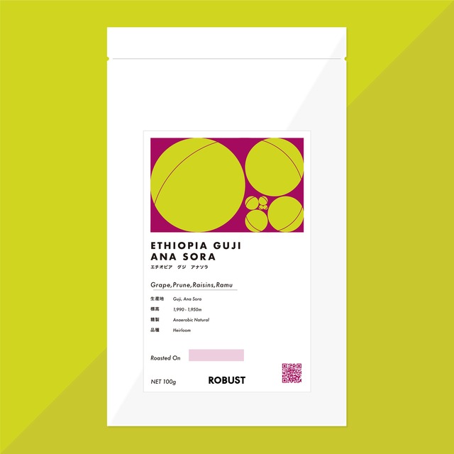 -Flavor Grape,Raisins,RedWine -生産地 Guji, Ana Sora -標高 1,990 - 1,950m -精製 Natural -品種 Heirloom -焙煎 浅煎り -Net 100g 昨年大好評だったアナソラのニュークロップ。 エチオピアナチュラル独特の濃厚な香り。 葡萄のような甘酸っぱい果実感、甘さと香りを纏った液体。 ROBUSTのラインナップの中でも一推しのコーヒーです。 パッケージに記載してある焙煎日より3ヶ月以内に お楽しみいただくことをおすすめします。 【アナソラ・ウォッシングステーションについて】 グジの北西部シャキッソ郡の標高1900mに位置するアナソラ集落にあるウォッシングステーションです。グジは、オロミア州に属するゾーンの1つで、この地に暮らすオロモの部族にちなんで名付けられました。ECXカテゴリーでは、古くはシダモとしてカテゴライズされていた為、シダモ・グジとカテゴライズされていました。ウラガ、アドラ、シャキソ、ハンベラ、ケルチャの5つのウォレダ(郡部)でコーヒー生産が行われており、シャキッソは緑豊かな森林帯の中でコーヒーが生産され、エチオピアの中でも豊かな環境を有するエリアとして知られています。 この地に暮らす人々は、グジの由来ともなったオロモ族を中心に、ゲデオ族、アムハラ族などが暮らしています。ウォッシングステーションは、1970年代にエチオピアに導入されたと言われており、グジや隣接するイルガチェッフェ、シダモエリアは、その走りとされており、ウォッシングステーションの歴史は古く、エチオピアのウォッシュドコーヒーにおいて、代表的な生産地、そして高品質なウォッシュドコーヒーの名産地とされています。